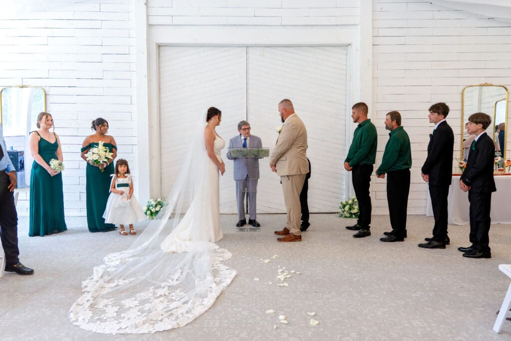 Like many Florida wedding days, the weather brought an unexpected shift. However, the rain changed the original plan for an outdoor ceremony. Instead of stress, everyone leaned into flexibility. The venue team helped create a new plan, and the ceremony moved inside the reception space at Andalusian Oaks.