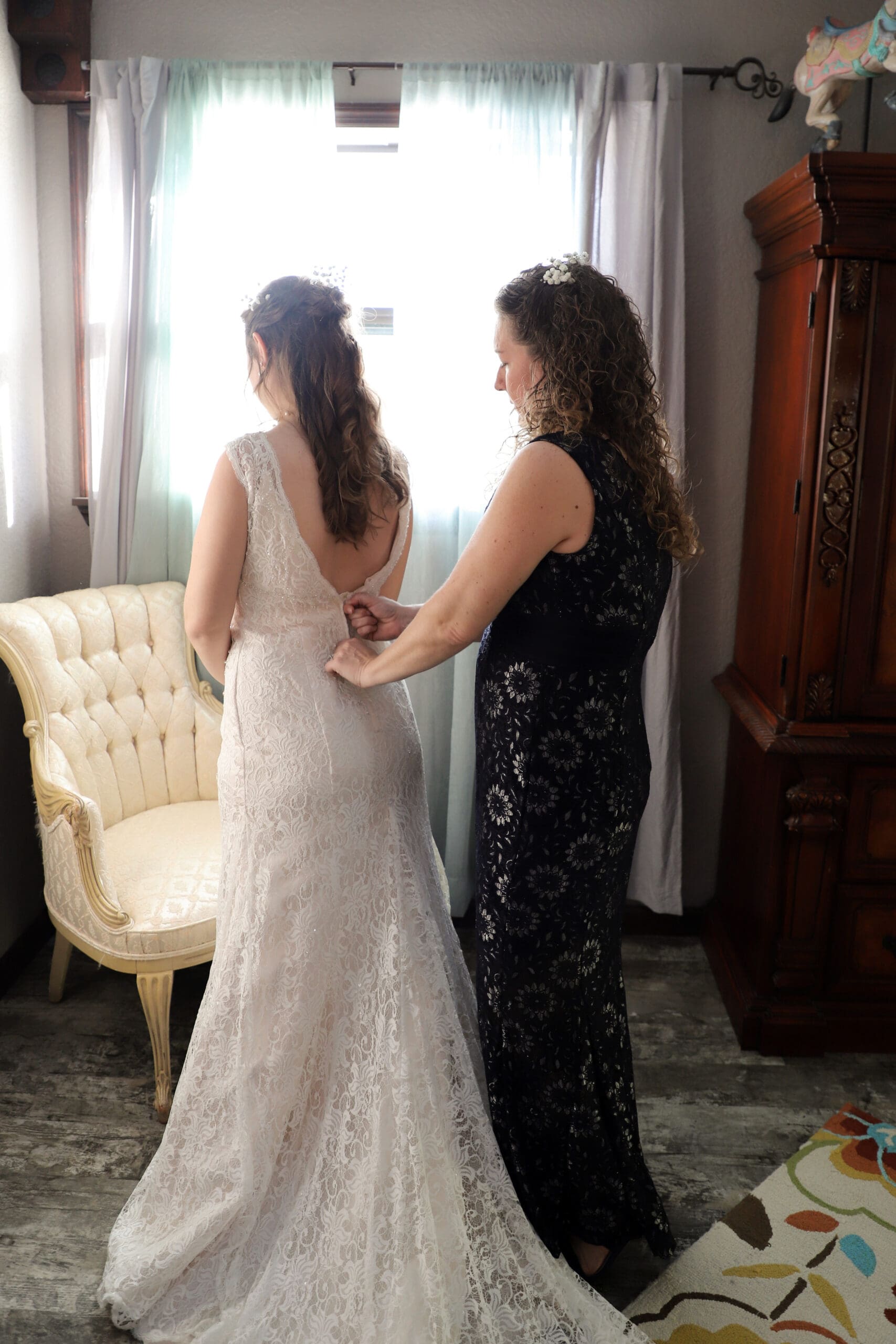Mother Helping Daughter Get Ready Wedding Day